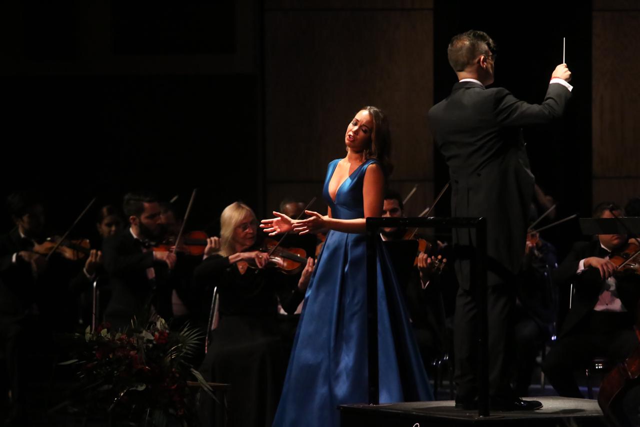 En el recital, la artista estuvo acompañada por la Orquesta Filarmónica del Desierto, bajo la dirección del maestro Natanael Espinoza, quienes brindaron un repertorio variado de diferentes títulos operísticos que fue del agrado de los asistentes.