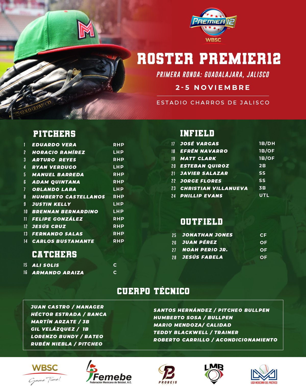 México será dirigido por el manager Juan Gabriel Castro, quien conjugó talento tanto de la Liga Mexicana de Béisbol como la Liga Mexicana del Pacífico.