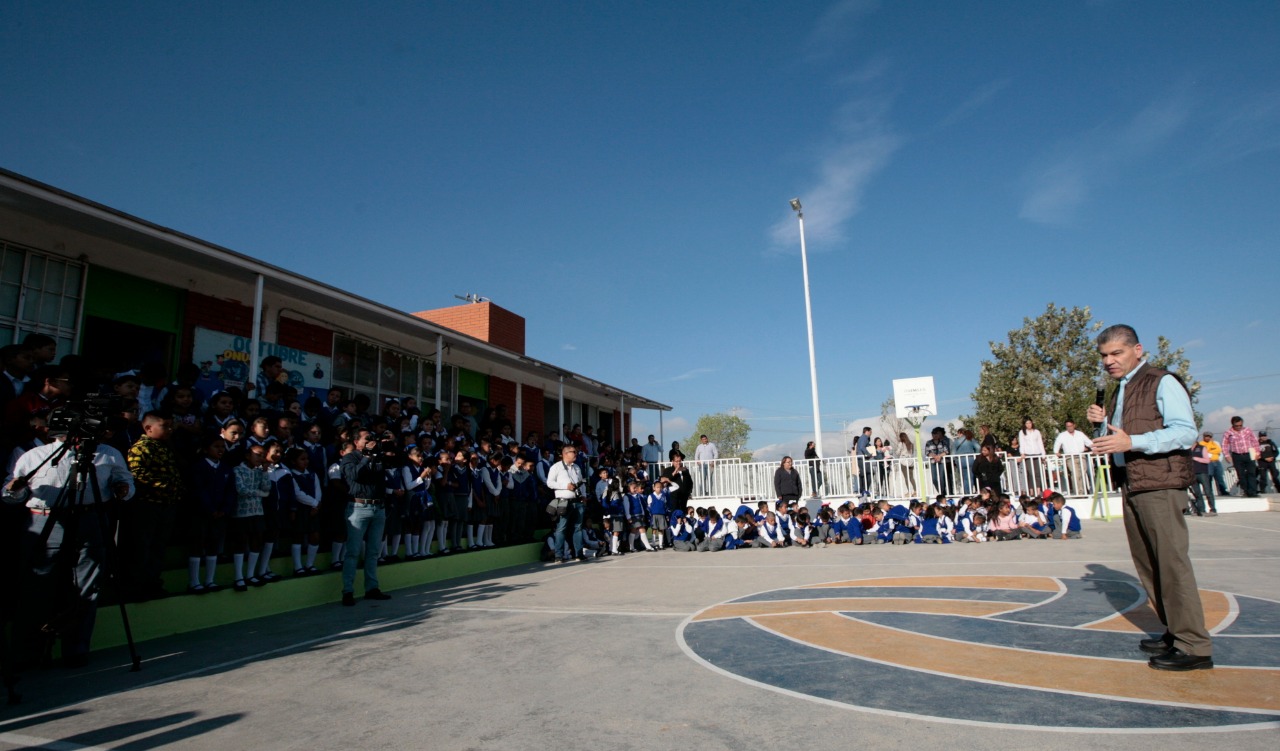 Como parte de la política educativa del Gobierno de Coahuila, el gobernador Miguel Ángel Riquelme Solís entregó dos aulas en la Escuela Primaria “Horacio del Bosque Dávila”, en beneficio de más de 700 alumnos.