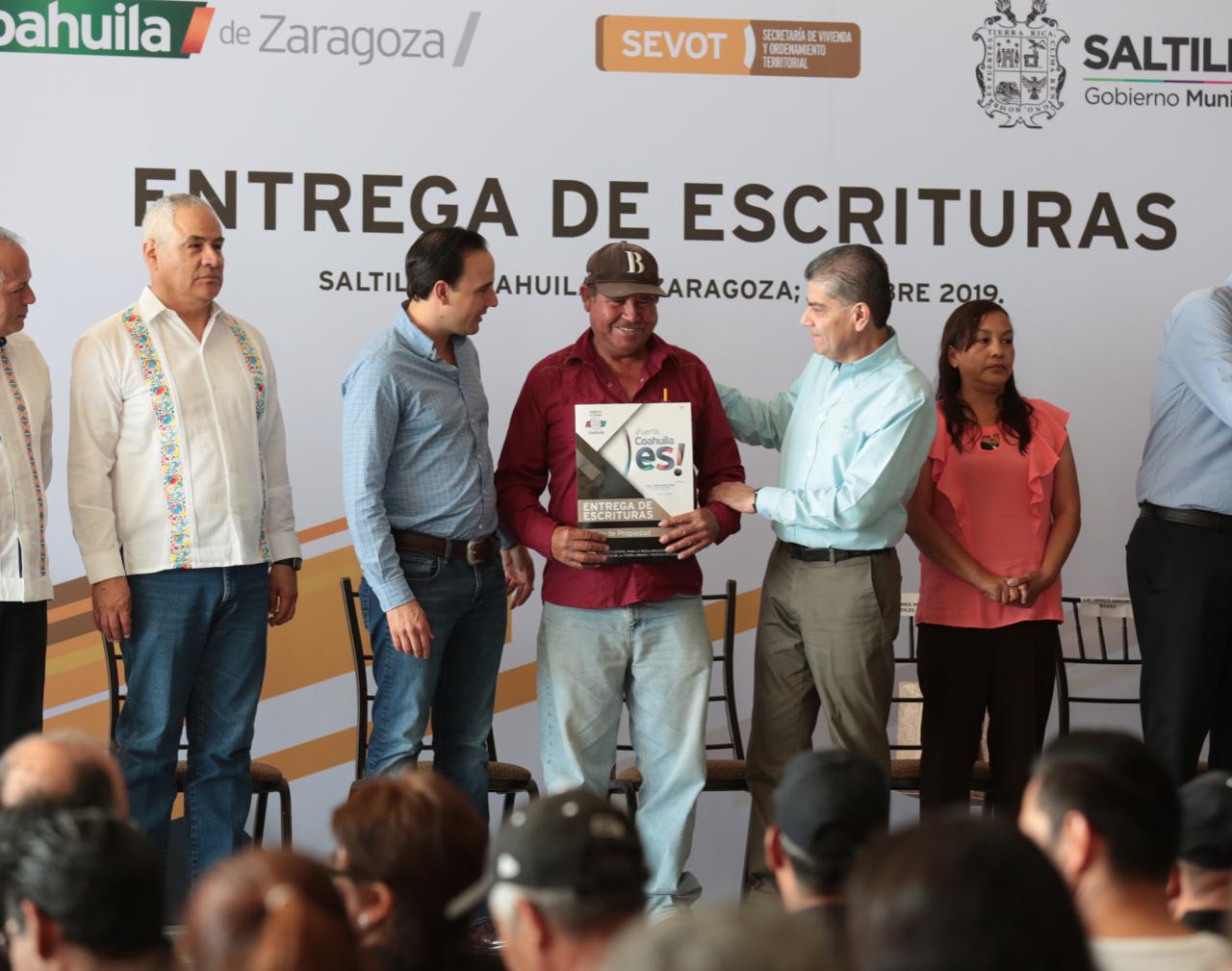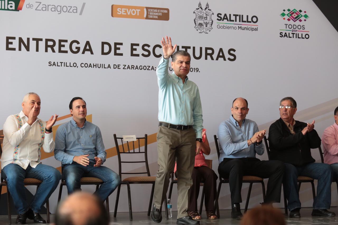 El alcalde de Saltillo, Manolo Jiménez Salinas, resaltó el trabajo en conjunto entre el Gobierno del Estado y municipios en beneficio de todos los coahuilenses, y en este tema poder dar las escrituras a familias que tenían años sin poder tramitarlas.