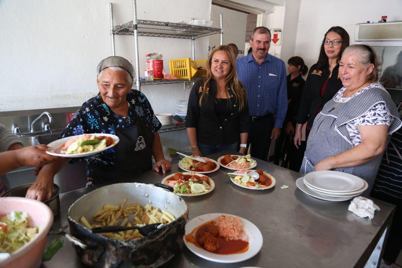 Acompañada de Roberto Cárdenas Zavala, Director General del DIF Coahuila; la directora de Inclusión Social y Familiar, Mayra Guillén Charles, así como de la coordinadora de la Región Sureste del Sistema Estatal DIF, Rocío Ramos Moncada, la esposa del gobernador Miguel Riquelme Solís agradeció el apoyo y trabajo conjunto para dar atención y alimentación a los adultos mayores que forman parte del padrón de beneficiarios del programa AMA, como a otros que asisten de manera diaria a este lugar.