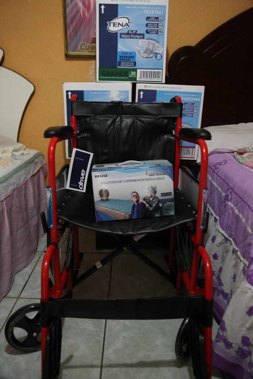 Al conocer esta historia, la esposa del gobernador Miguel Riquelme la visitó en su domicilio, de la Colonia Provivienda, para entregarle una silla de ruedas, que facilitará a ella y sus familiares los paseos al interior y exterior de la casa y dar seguimiento a sus consultas médicas.