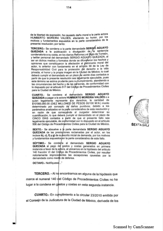COAHUILADESTACADASMEXICO Ex gobernador de Coahuila gana juicio al periodista Sergio Aguayo Por El Heraldo de Saltillo - 11 octubre, 2019 FacebookTwitterPinterestWhatsApp El ex gobernador de Coahuila, Humberto Moreira Valdés, ganó juicio al periodista Sergio Aguayo. Aguayo tendrá que pagar al ex gobernador 10 millones de pesos como reposición del daño moral que le causo con sus publicaciones. (EL HERALDO)