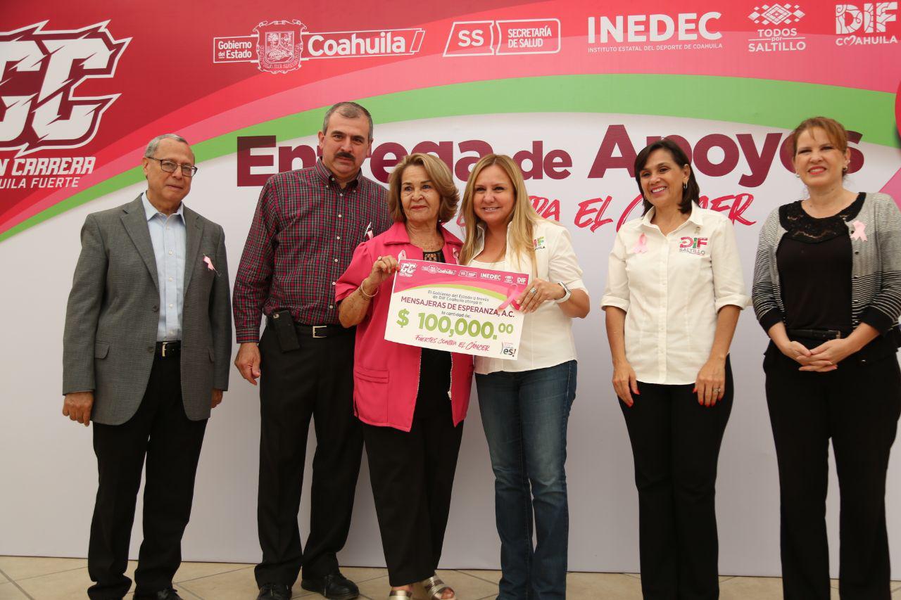 En apoyo a la noble labor de las organizaciones de la sociedad civil que ayudan en su lucha a las personas que padecen cáncer, el Gobierno del Estado, a través del DIF Coahuila, entregó apoyos económicos por un millón de pesos a 10 asociaciones de los municipios de Saltillo y Torreón.