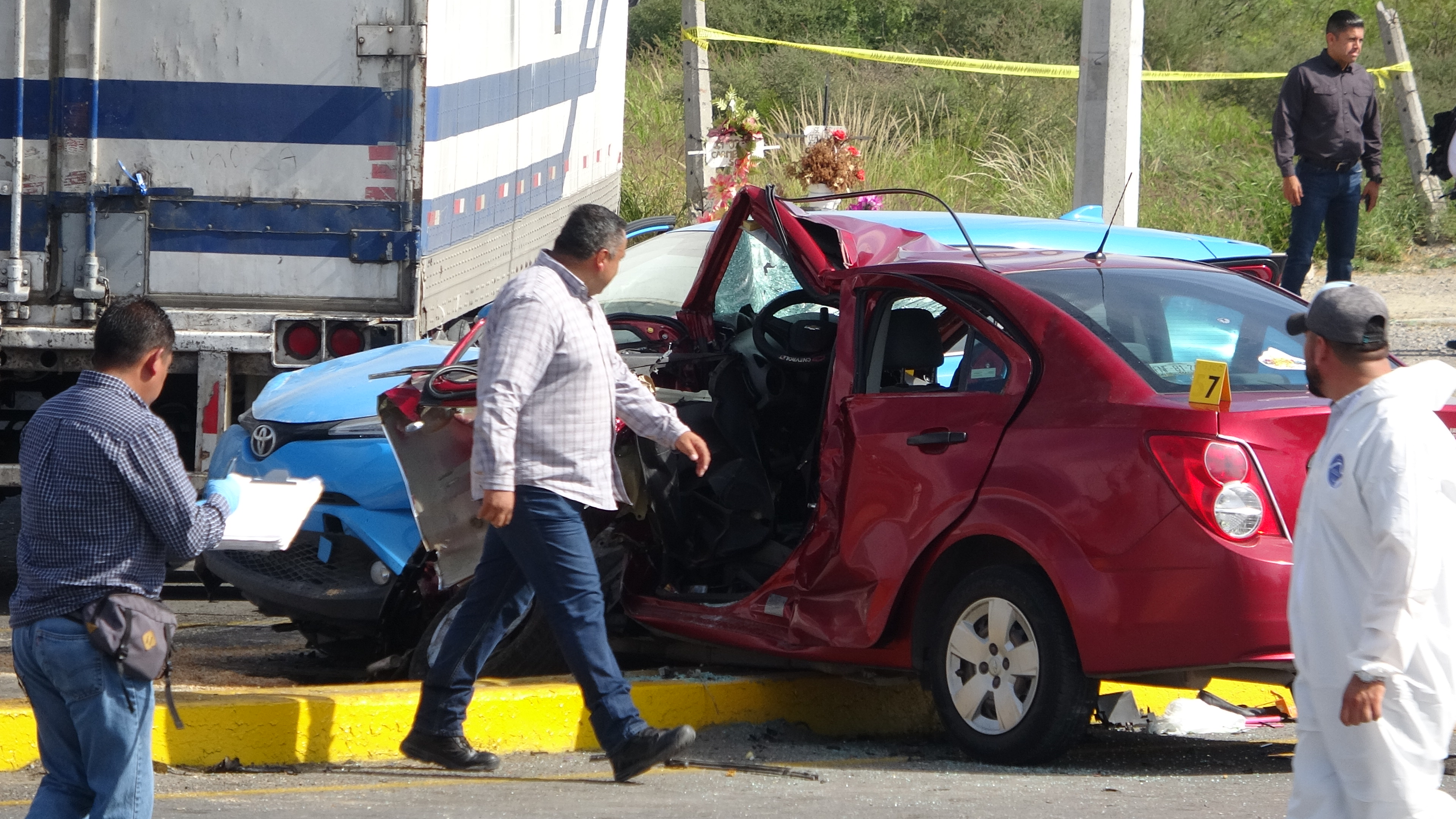 Se desplazaban con dirección al poniente sobre la calzada Madero, cuando -de acuerdo a testigos- al llegar a la intersección con la carretera a Torreón- se atravesaron al paso de un tráiler, cuyo operador no alcanzó a detenerse.