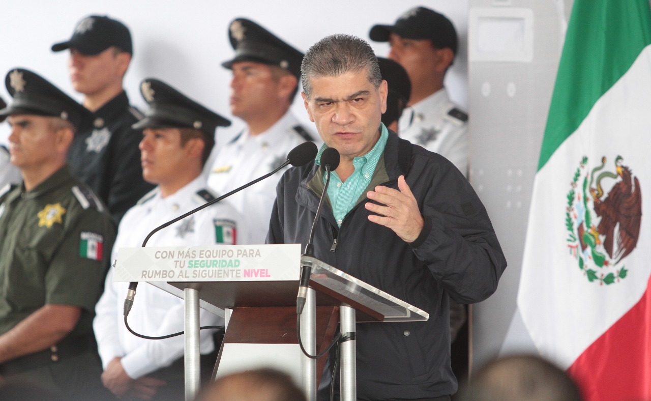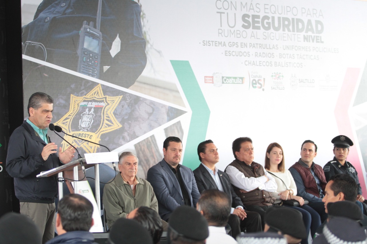 El gobernador Miguel Ángel Riquelme Solís entregó este miércoles uniformes y equipo táctico a las fuerzas policiales de la Capital de Coahuila por un monto superior a los 13 millones 525 mil pesos.