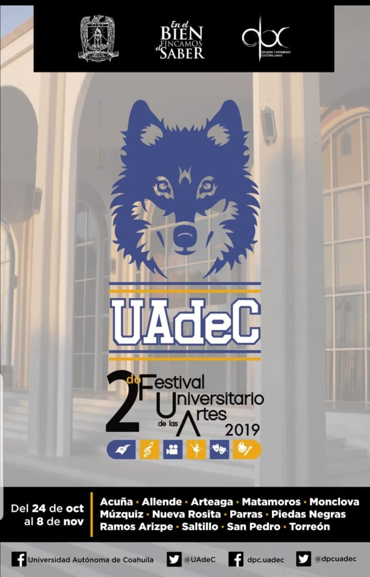 Más de 80 actividades culturales, artísticas y de formación se presentarán en 13 ciudades del estado a través del Segundo Festival Universitario de las Artes de la Universidad Autónoma de Coahuila del 24 de octubre al 8 de noviembre.