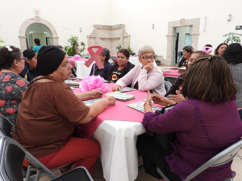 La actividad fue organizada por personal de la Dirección de Familia Saludable y Apoyos Complementarios como parte de las acciones del programa “Contigo en la atención del cáncer”, y cuyo titular, Josué Gabino Jiménez Flores, condujo por unos momentos la cantada de la baraja de la lotería, para disfrute de las asistentes.