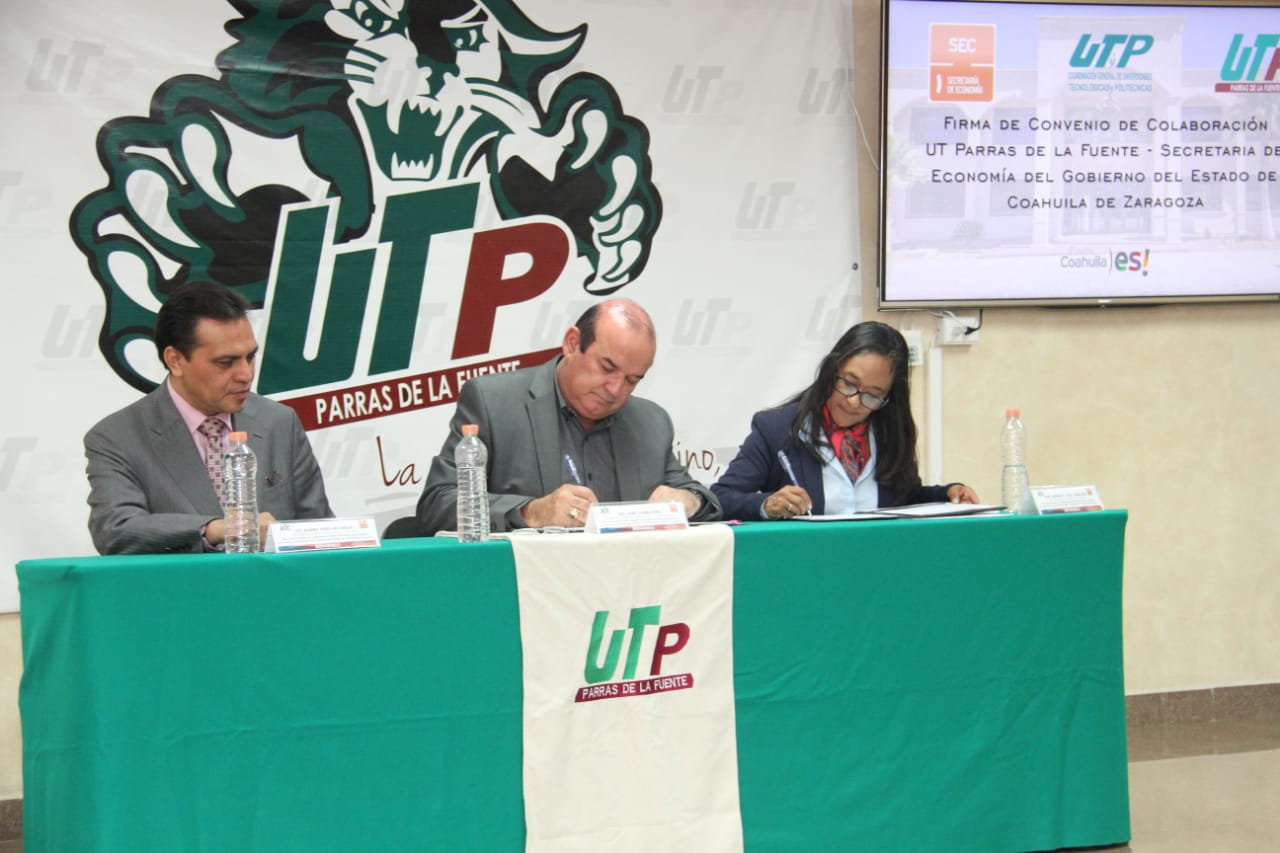 Como firmantes estuvieron Jaime Guerra Pérez, titular de la SEC, y Adriana Elizabeth Vidal Caballero, Rectora de la UTP. El Alcalde de Parras de la Fuente, Ramiro Pérez Arciniega, fungió como testigo de honor.