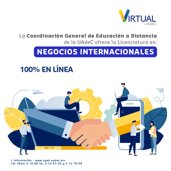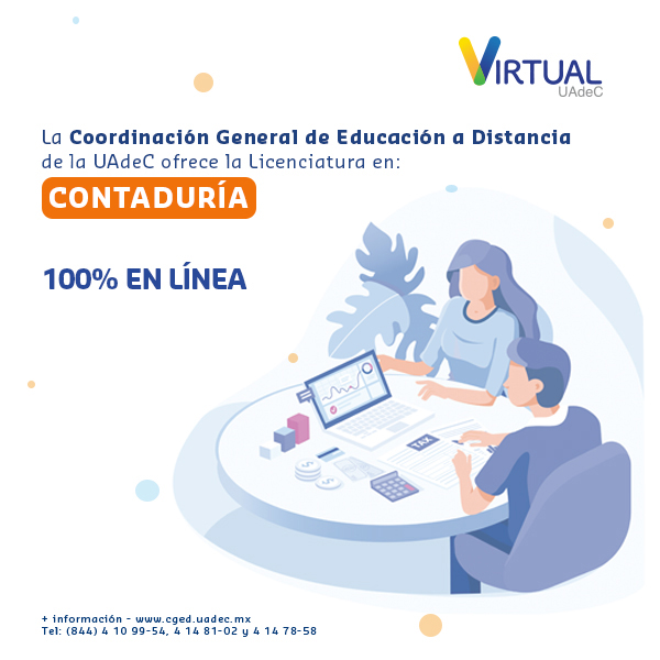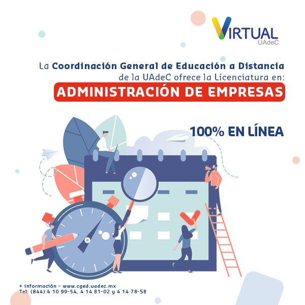 La Universidad Autónoma de Coahuila, a través de la Coordinación General de Educación a Distancia, invita a registrarse para estudiar los programas de licenciatura en Administración de Empresas, Contaduría, Negocios Internacionales y Recursos Humanos, modalidad en línea.