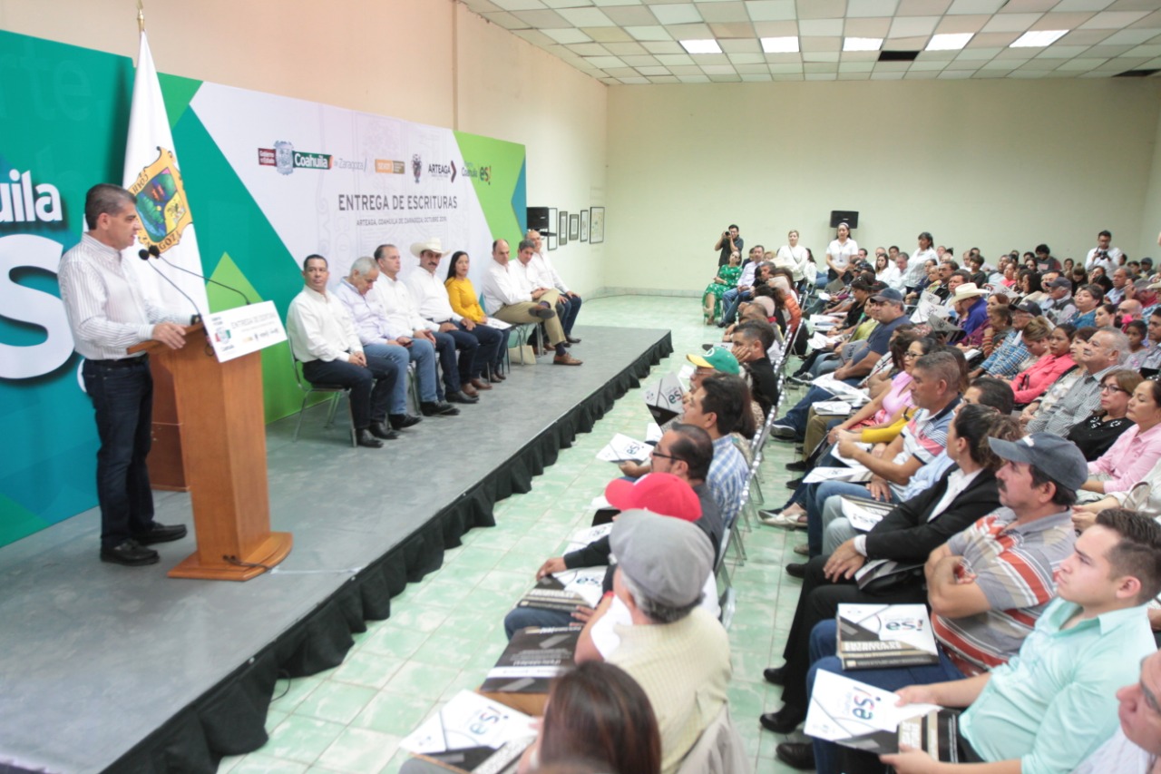 El Mandatario estatal destacó el gran trabajo que se realiza en conjunto para poder responder a una de las necesidades que tienen cientos de familias en Coahuila, y como parte de esa labor se ha logrado entregar una cifra superior a las 4 mil 300 escrituras.