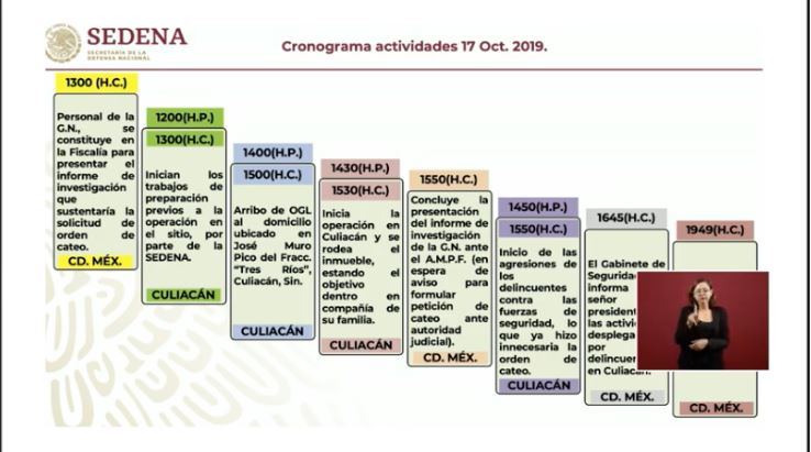 Ciudad de México.- Luis Cresencio Sandoval González, el titular de la Secretaría de la Defensa Nacional (Sedena), presentó paso por paso cómo se dio el operativo del 17 de octubre de 2019 en Culiacán, Sinaloa, donde se detuvo a Ovidio Guzmán y posteriormente se liberó.