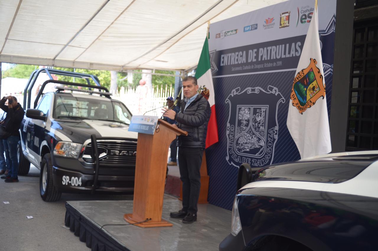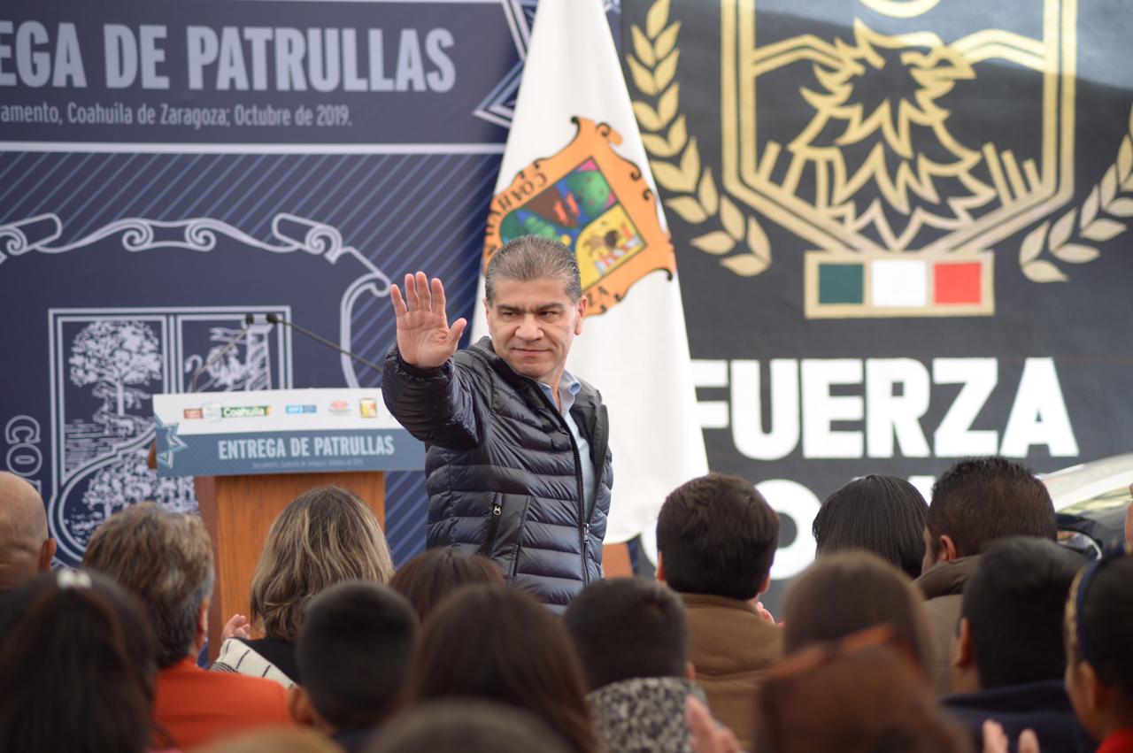 Coahuila cuenta con 3 helicópteros que sobrevuelan las diversas regiones del territorio estatal, y se entregan patrullas en todos los municipios, sin ver partido político alguno, porque la seguridad no distingue partidos, aclaró el Gobernador.