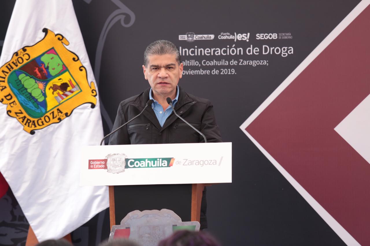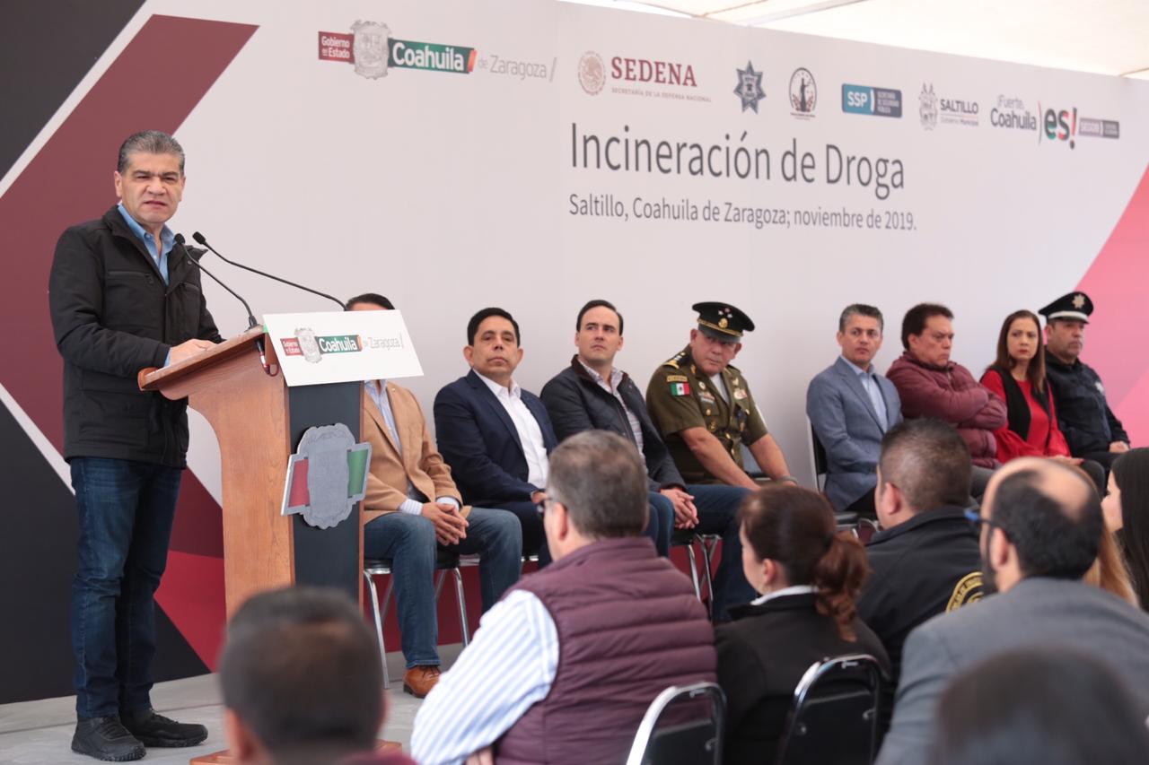 En lo que va de la Administración estatal, en Coahuila han sido destruidos más de 63.3 toneladas de drogas y 26 mil 780 litros de alcohol decomisados por las autoridades, con un valor total de 2 mil 141 millones 888 mil 17 pesos, dijo el gobernador Miguel Ángel Riquelme Solís.
