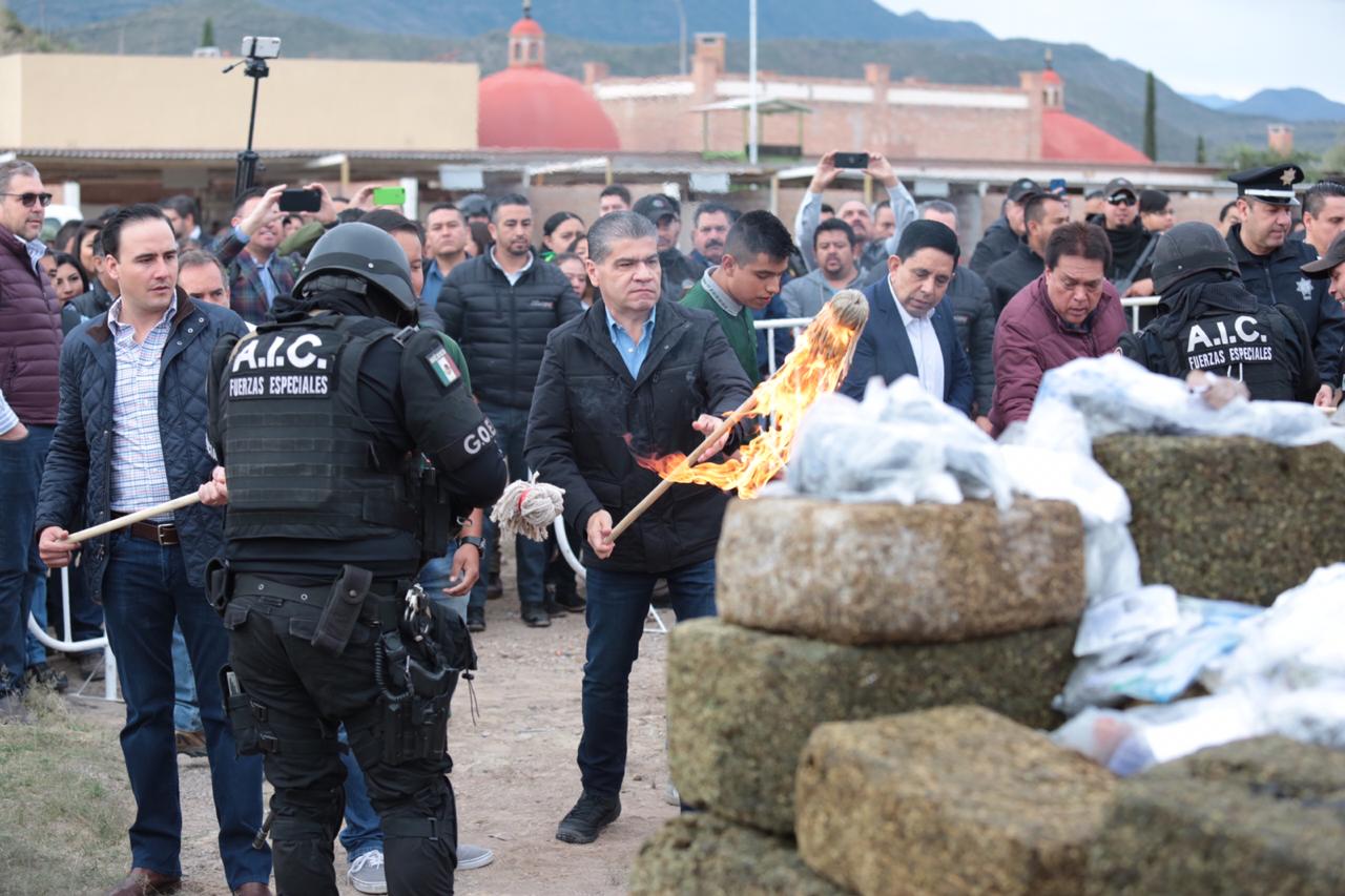 Al encabezar la destrucción de enervantes y alcohol por un monto de 41 millones 335 mil 114 pesos, resaltó el trabajo estrecho y coordinado de las autoridades de los tres órdenes de Gobierno para mantener la lucha en favor de la tranquilidad y la seguridad de la población.
