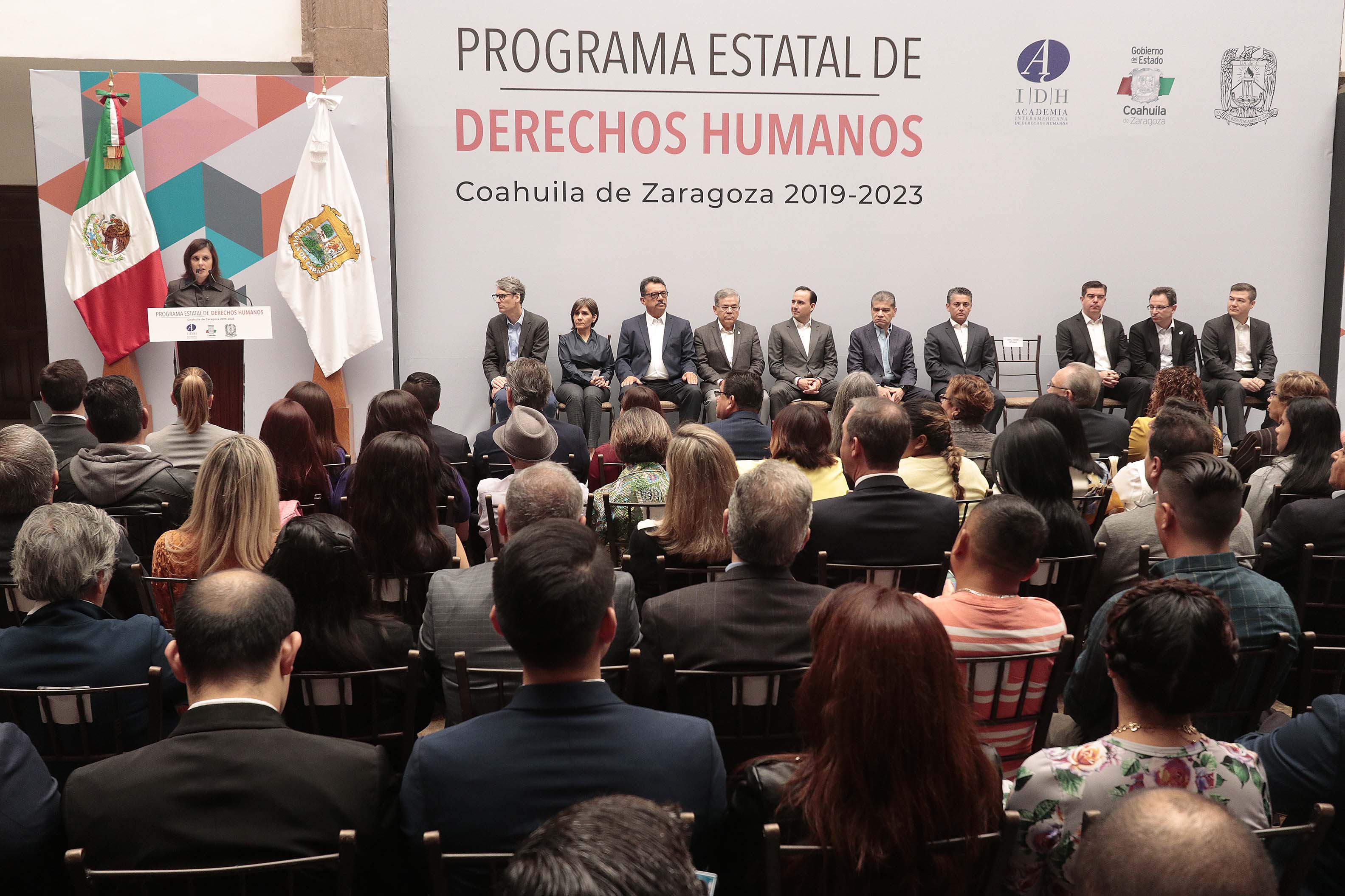 En una ceremonia celebrada en el Palacio de Gobierno, se presentó el Programa Estatal de Derechos Humanos 2019-2023, el cual fue creado por la Academia Interamericana de Derechos Humanos de la Universidad Autónoma de Coahuila.