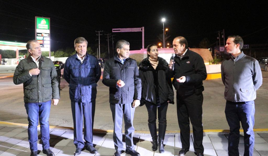 La gira por Piedras Negras concluyó con el encendido de la Fuente Monumental, ubicada en el cruce del Bulevar Román Cepeda y República.