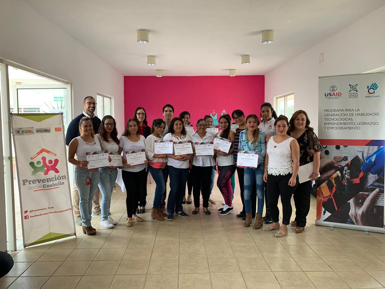 En sinergia con el Consejo Cívico de Instituciones de Coahuila (CCIC), 22 mujeres pertenecientes a las comunidades de los Centros Integrales de Prevención y Desarrollo Ciudadano “Diana Laura Riojas”, “Valencia” y “El Álamo”, de esta ciudad, culminaron satisfactoriamente el modelo de negocios para productos del programa “Creactivate”.