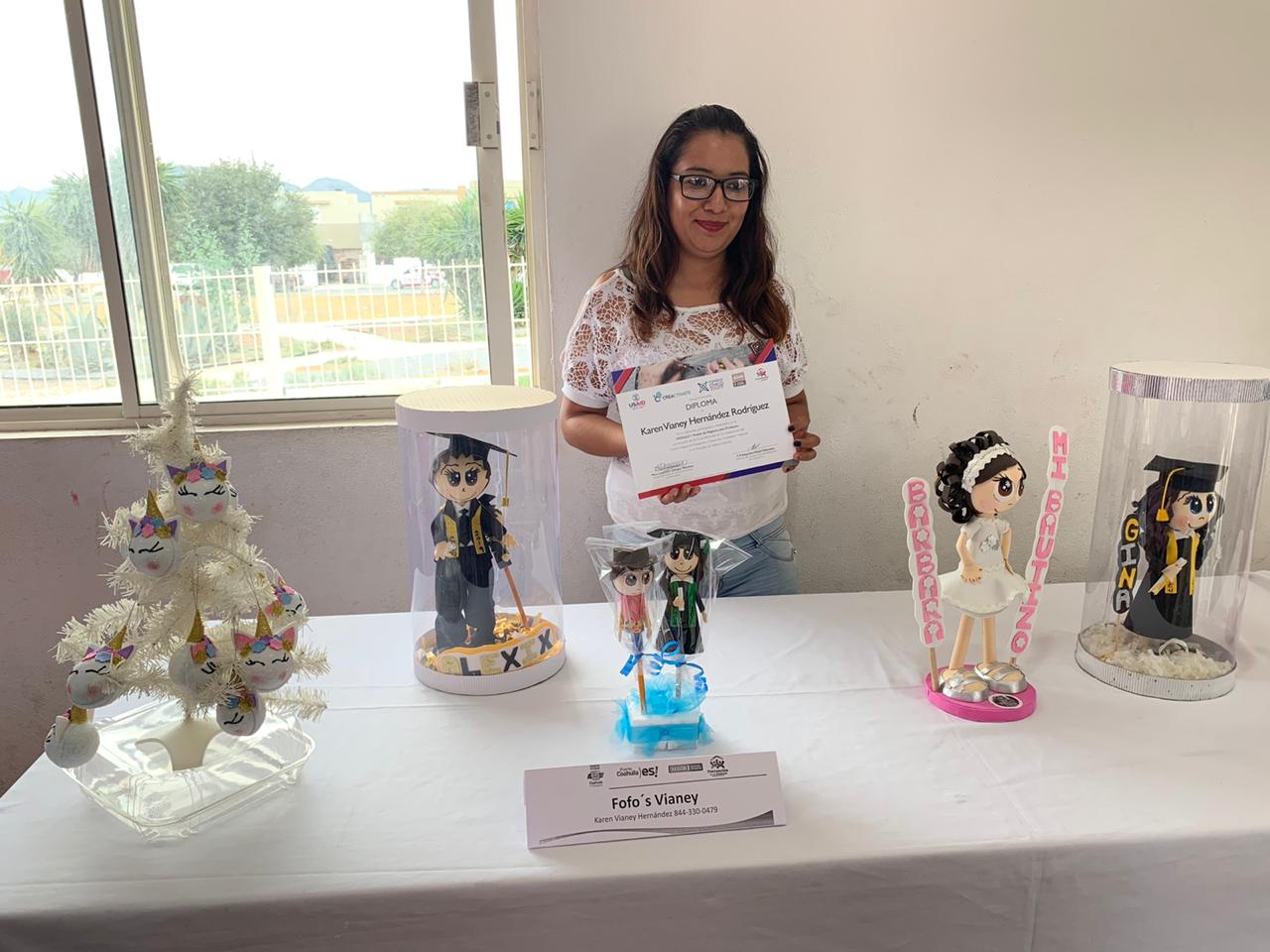 Durante la ceremonia de entrega de constancias, estuvo presente además de Gallegos Martínez, Alejandra Wade, directora del CCIC, quienes realizaron un recorrido por la exhibición de productos de cada una de las participantes.
