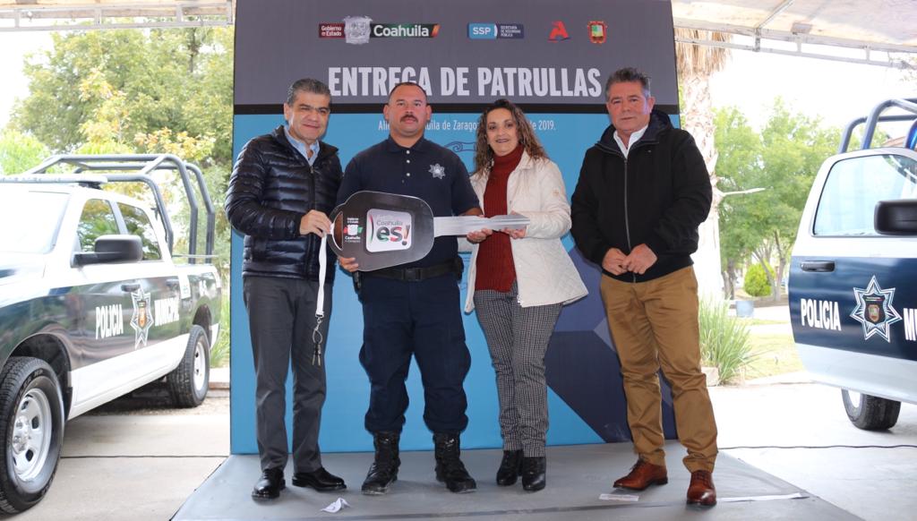 Para cubrir las necesidades primordiales de los coahuilenses, mantener el bienestar, tranquilidad y paz, el gobernador Miguel Ángel Riquelme Solís realizó la entrega de patrullas a los municipios de Allende y Sabinas, y obras y apoyos para fortalecer la infraestructura deportiva en Progreso.