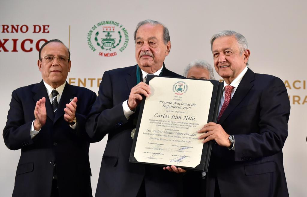 Al recibir el premio nacional de Ingeniería 2018, de manos del presidente Andrés Manuel López Obrador, el titular de Grupo Carso dijo que sus empresas, tan solo en este año, realizaron una inversión del orden de los 36 mil millones de pesos.