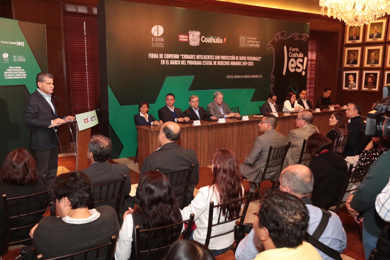 El gobernador Miguel Ángel Riquelme Solís signó tal compromiso en conjunto con el Comisionado Presidente del Instituto Nacional de Transparencia, Acceso a la Información y Protección de Datos (INAI), Francisco Javier Acuña Llamas, y la titular de la Academia Interamericana de los Derechos Humanos (AIDH), Irene Spigno.