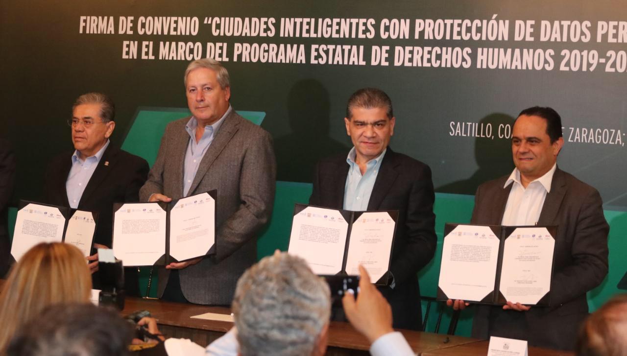 Para generar inteligencia encaminada a la prevención del delito para crear condiciones que favorezcan la inversión, comercio, consumo y garantizar el uso pacífico de los espacios públicos, además de prevenir y perseguir los hechos delictivos y las faltas administrativas, en Coahuila se realizó la firma de convenio “Ciudades Inteligentes con Protección de Datos Personales”.