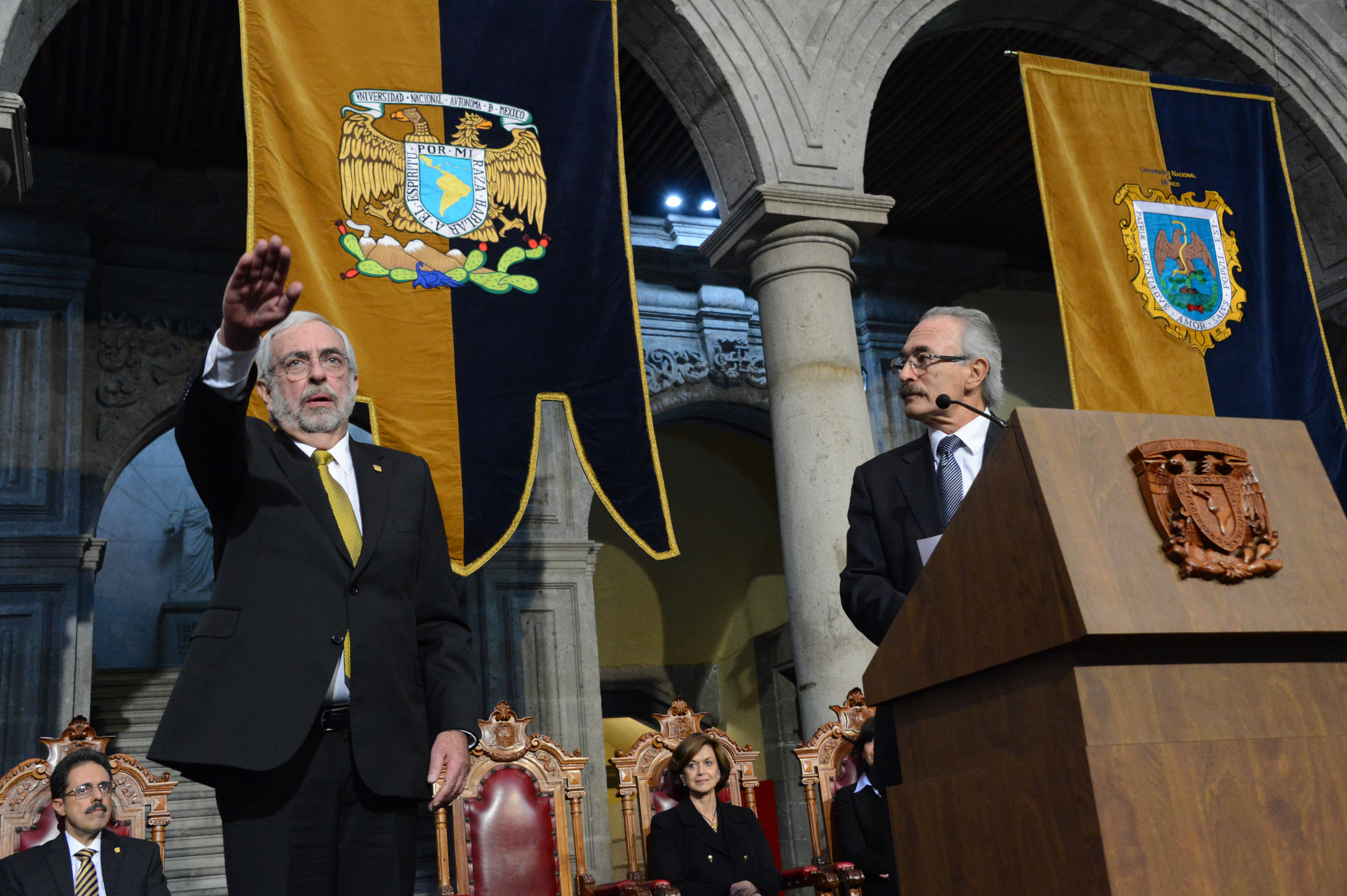 Finalmente, expresó que asume la Rectoría de la UNAM con el compromiso de defender los principios y esencia, para trabajar porque continúe siendo una universidad pública y laica, con compromiso social, responsable y transparente; reflexiva, tolerante y segura; que se exprese con libertad y honestidad intelectual. “Y que sea indeclinablemente autónoma y orgullosamente mexicana”.
