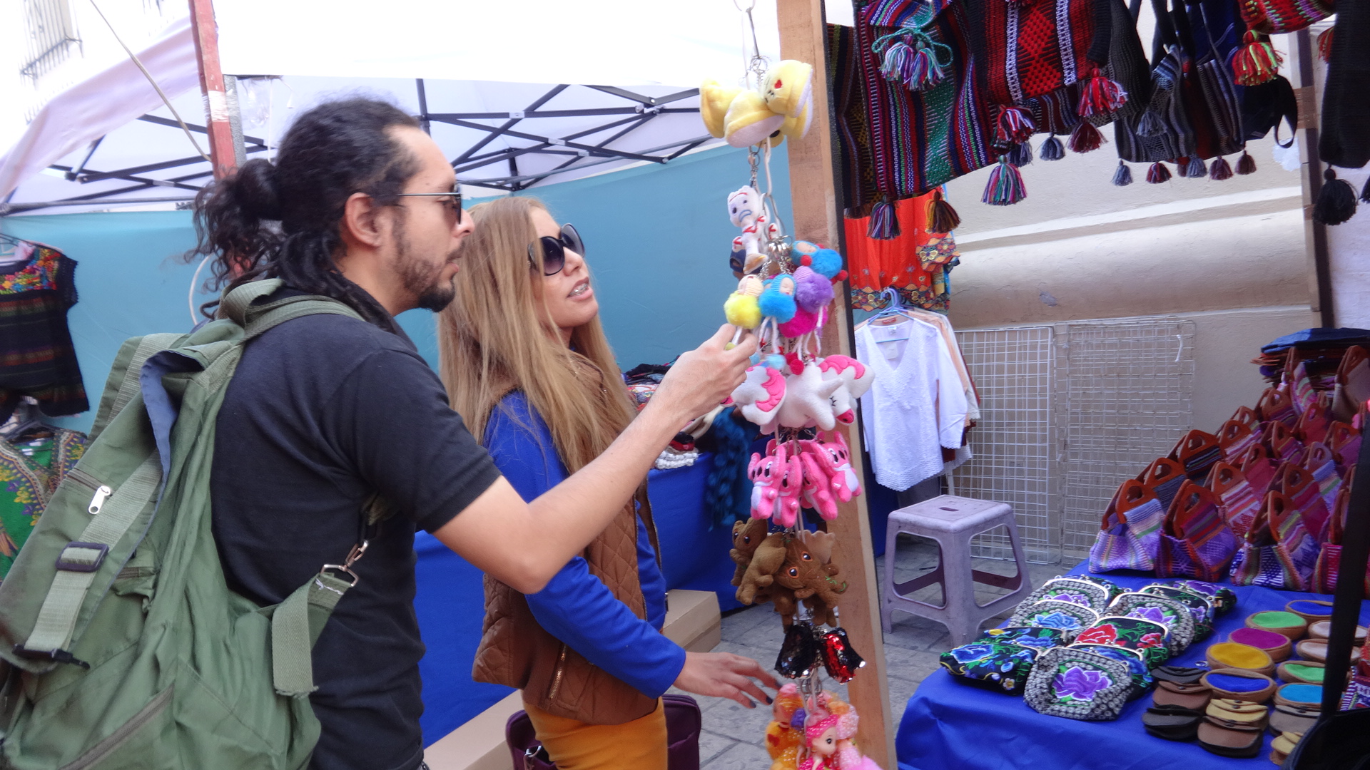 El Callejón Santos Rojo a un costado de la Catedral de Santiago, se llenó de colorido y tradición, gracias a la instalación de una muestra artesanal en la que productores de Oaxaca, Jalisco, Michoacán, Guerrero y Ecuador como país invitado, exponen sus productos gastronómicos y artesanales para ser adquiridos por el público local.