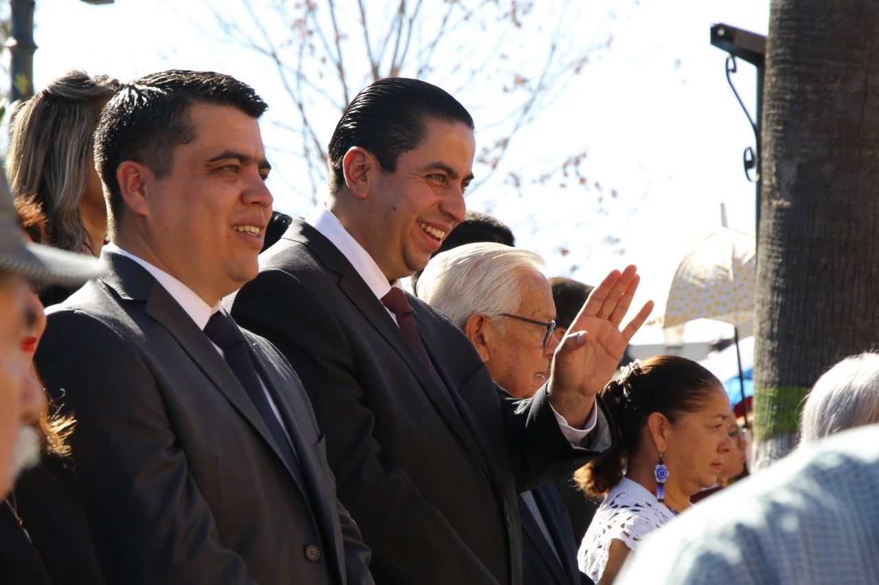 Acompañaron al alcalde a presenciar el desfile cívico, el secretario de ayuntamiento Alejandro González Farías, secretarios y directores de su gabinete, autoridades educativas, así como el cronista de la ciudad Manolo H. Gil Vara, síndicos y regidores del ayuntamiento. (ACONTECER)