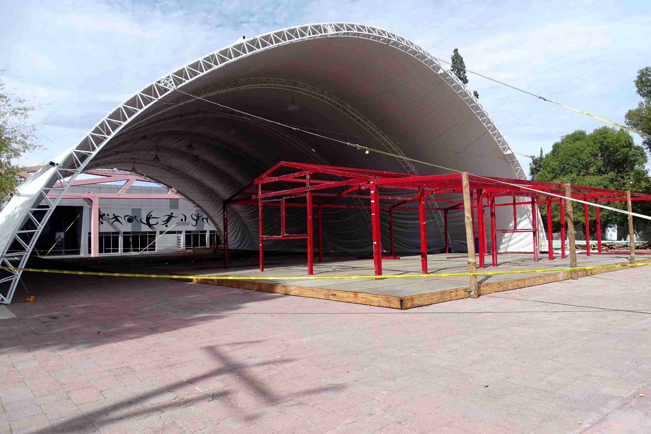 Uno de los encargados del gimnasio municipal, lugar donde se está instalando la pista de hielo, detalló que después de colocarse la estructura del domo, se pasa a la colocación del área de patines y por ultimo las maquinas enfriadoras que producirán el hielo para patinar. (EDUARDO SERNA).