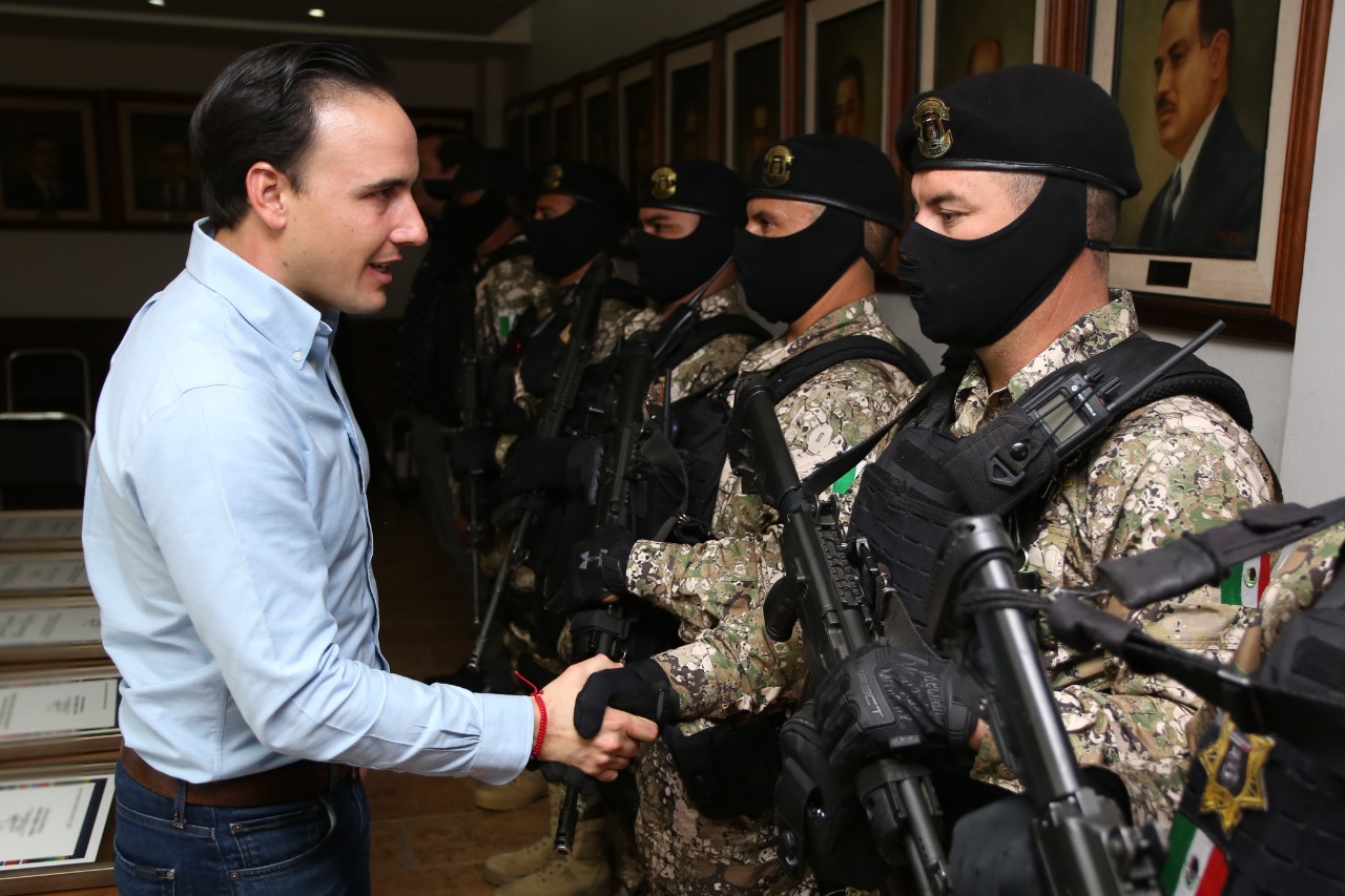 El alcalde de Saltillo, Manolo Jiménez Salinas, entregó reconocimientos extraordinarios a 26 elementos de la Comisión de Seguridad y Protección Ciudadana por su destacado trabajo a favor de la ciudadanía, y exhortó a toda la corporación para que estas acciones permeen y se sigan multiplicando.