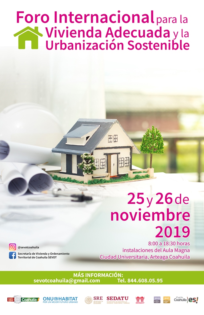 El Gobierno del Estado, junto a ONU-Habitat, a través de la Secretaría de Vivienda y Ordenamiento Territorial (SEVOT) y la Secretaría de Infraestructura, Desarrollo Urbano y Movilidad (SIDUM), invita a profesionistas, funcionarios, académicos, estudiantes, cámaras, empresarios y sociedad civil a participar en el Foro Internacional para la Vivienda Adecuada y la Urbanización Sostenible.