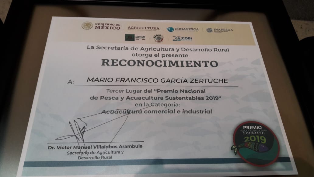 Con este proyecto, el Premio reconoce a Mario el esfuerzo realizado para innovar, mejorar e implementar buenas prácticas de pesca y acuacultura, por conservar, proteger, aprovechar y restaurar ecosistemas acuáticos pesqueros y acuícolas, así como por generar e intercambiar conocimiento y la comercialización de productos sustentables.