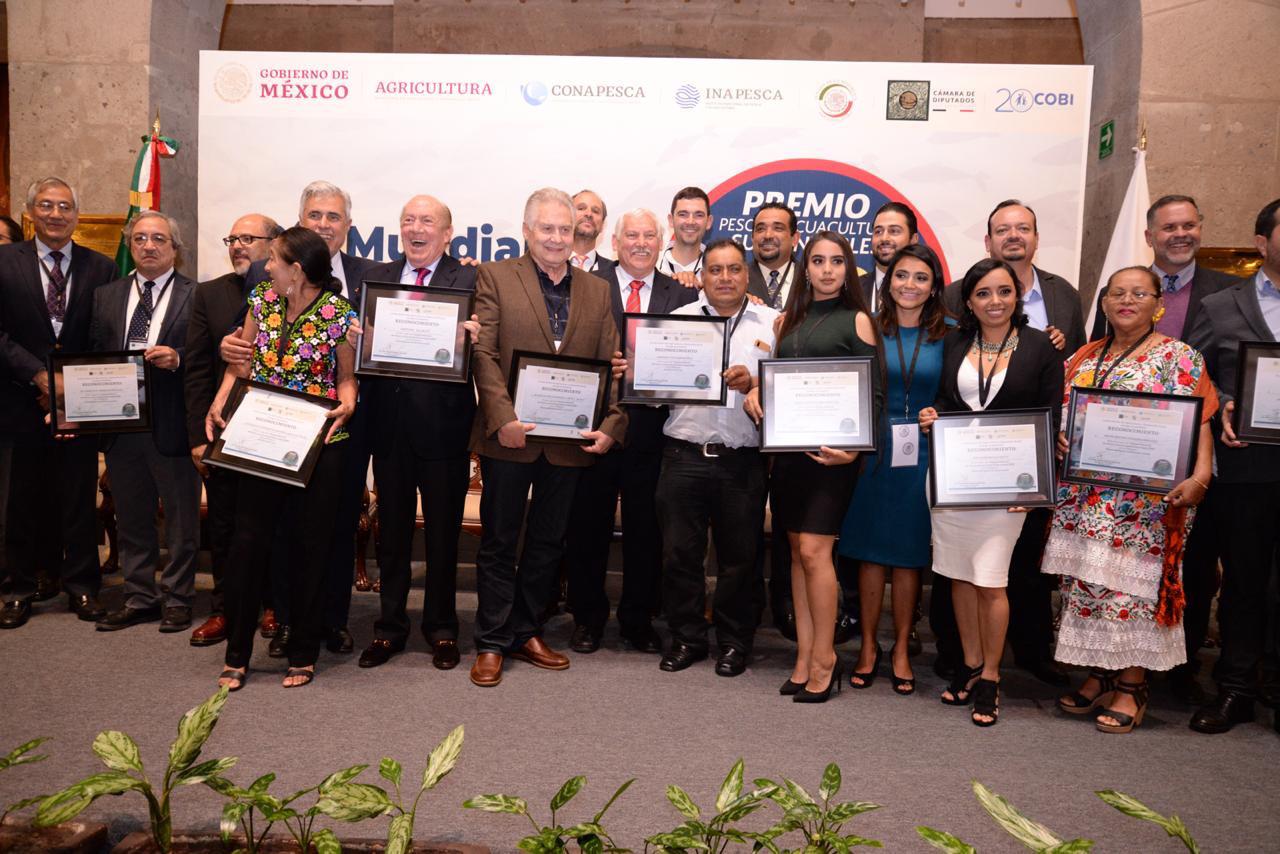 En el marco del Día Mundial de la Pesca, celebrado el día 21 de noviembre, el Gobierno de México a través de la Secretaría de Agricultura y Desarrollo Rural, por conducto de la Comisión Nacional de Acuacultura y Pesca (CONAPESCA), en coordinación con el Instituto Nacional de Pesca y Acuacultura (INAPESCA), la Comisión de Agricultura, Ganadería, Pesca y Desarrollo Rural del Senado de la República, la Comisión de Pesca de la Cámara de Diputados del H. Congreso de la Unión, así como la organización civil Comunidad y Biodiversidad, A.C., (COBI), otorgó el Premio Pesca y Acuacultura Sustentables 2019 a proyectos que destacaron en cinco categorías por realizar esfuerzos en la innovación, impacto, mejora o buenas prácticas de pesca o acuacultura sustentables.