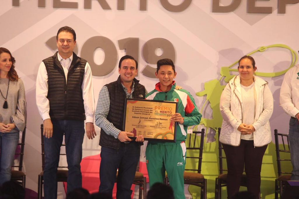 Al entregar el Premio al Mérito Deportivo 2019, el alcalde Manolo Jiménez Salinas destacó que en su gobierno se brinda un importante apoyo al deporte y se reconocen los múltiples logros que consiguen los atletas saltillenses.