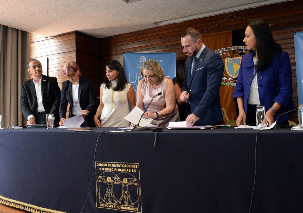 En tanto, Frédéric Vacheron, representante de la UNESCO en México, refirió que las guerras y la violencia nacen en la mente de hombres y mujeres, y es ahí donde deben erigirse los baluartes de la paz. “Es justamente lo que creemos que este pacto puede lograr en la era del cambio digital, democrático, social y político”.