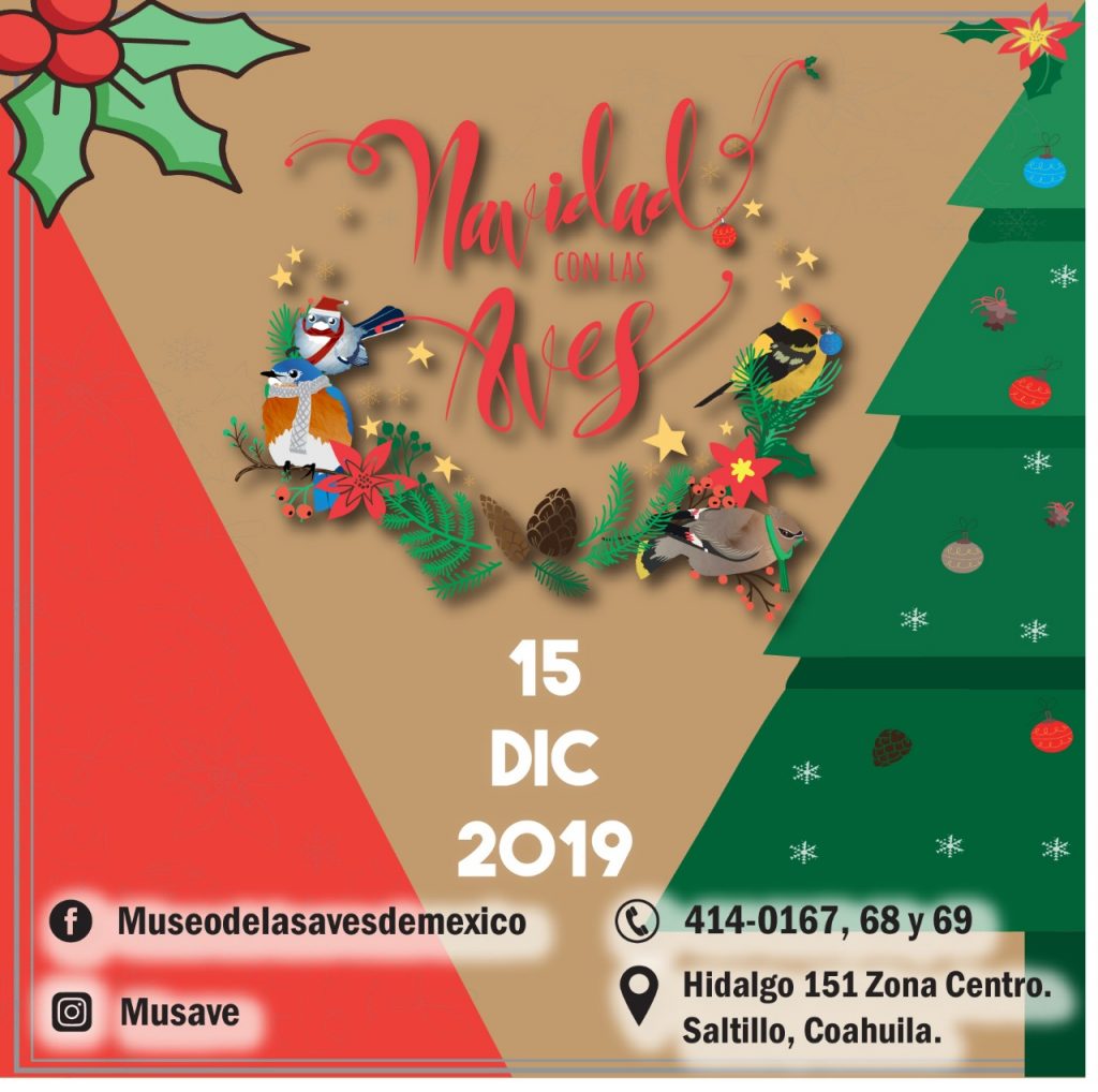 El Museo de las Aves de México dio a conocer que el próximo 15 de diciembre se llevarán a cabo en esa institución las actividades del Tercer Festival “Navidad con las Aves”, evento que se está convirtiendo en toda una tradición y cuyo objetivo de que los saltillenses vivan esta temporada navideña de una manera diferente, y conviviendo con las manifestaciones del arte, la cultura, y el aprendizaje sobre la protección al medio ambiente.
