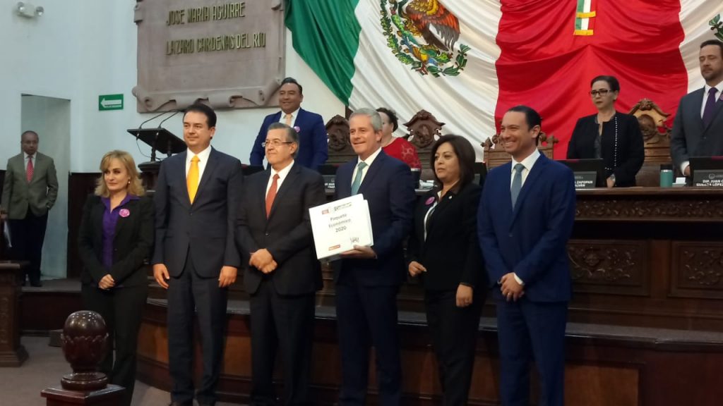 En la presentación, el funcionario informó que la propuesta de Ingresos para el próximo ejercicio fiscal 2020, se estima en 49 mil 746 millones de pesos, que principalmente se encuentran integrados en montos de 3 mil 249 millones de pesos por concepto de impuestos, 3 mil 12 millones de pesos en derechos, 20 mil 604 millones de pesos en participaciones, 17 mil 468 millones en aportaciones, y convenios por 3 mil 620 millones de pesos.