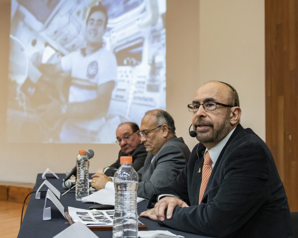 El profesor investigador jubilado de la Facultad de Ingeniería de la UNAM dictó una conferencia en el marco del 34 aniversario del primer mexicano en el espacio