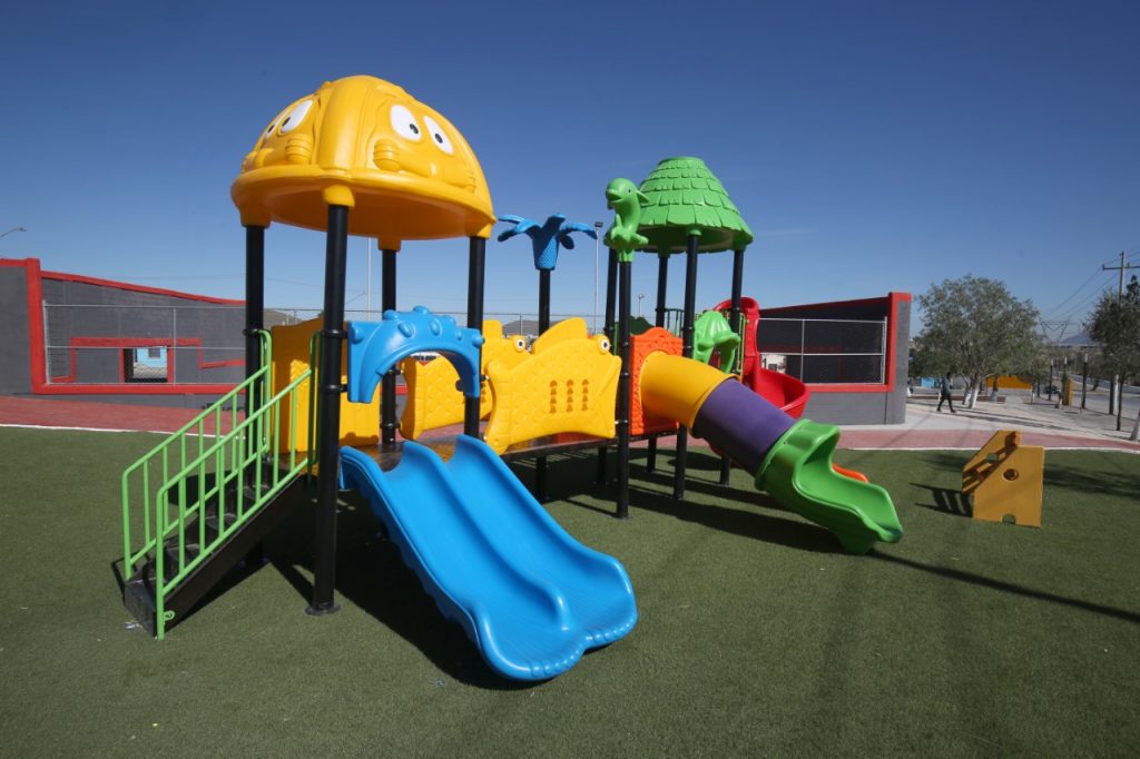 Esta rehabilitación de plaza y cancha consta de concreto estampado, concreto para recibir pasto, pasto sintético, juegos infantiles, botes de basura, luminarias, cable de aluminio, muro decorativo, grava, piedra volcánica, árboles, una cancha de usos múltiples que comprende 76.37 metros cuadrados de malla ciclónica, 68.32 metros cuadrados de muro de block, 37.42 metros lineales de castillos, 40.44 metros lineales de dala de cerramiento, 42.36 metros lineales de malla ciclónica, 427.96 metros cuadrados de pintura vinílica, 420.07 metros cuadrados de pintura canflex y dos piezas de arbotantes teniendo una inversión total de 2 millones 092 mil pesos.