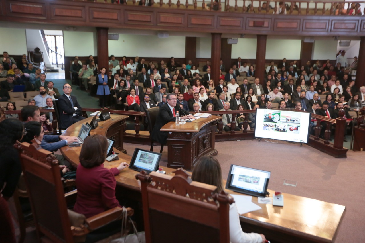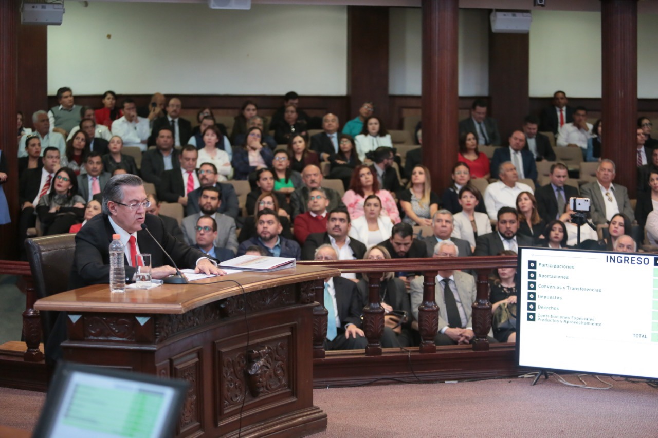 Destacó ante los legisladores locales que en el Avance de Gestión Financiera al Tercer Trimestre se han obtenido ingresos por 36 mil 852 millones de pesos, en los conceptos de Participaciones, por 15 mil 446 millones de pesos; en Aportaciones por 10 mil 415 millones de pesos; en Convenios y Transferencias por 4 mil 175 millones de pesos; en Impuestos por 2 mil 465 millones de pesos; Derechos por 3 mil 172 millones de pesos y en Contribuciones Especiales, Productos y Aprovechamiento por mil 179 millones de pesos.