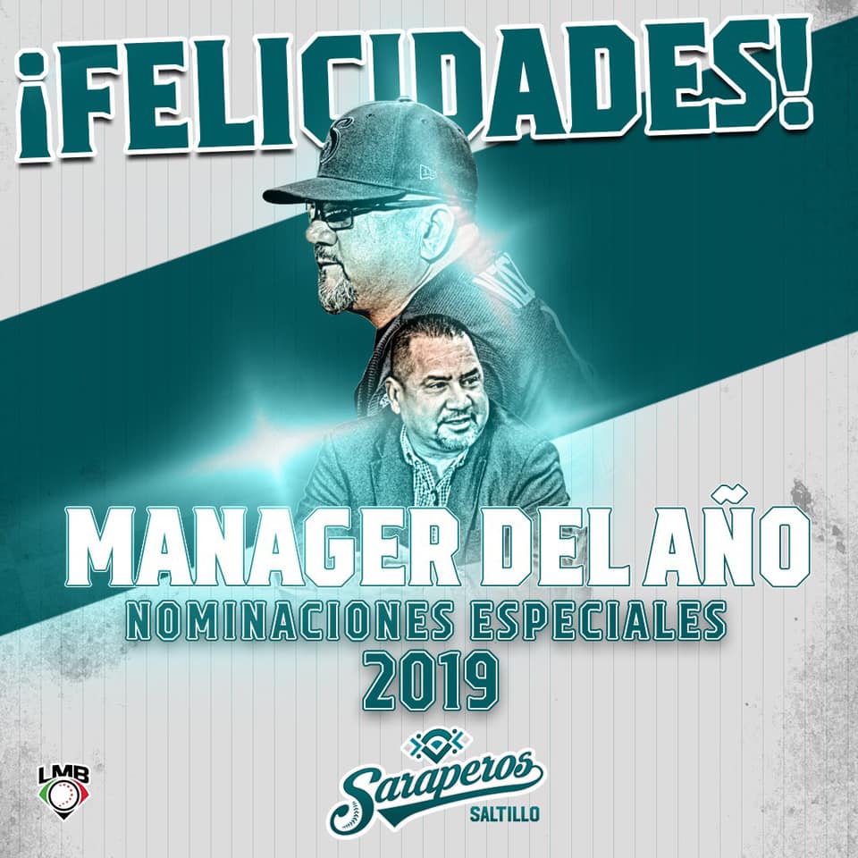 A nombre de la directiva de Saraperos de Saltillo, de todos los que conformamos la organización Saltillense, nuestro reconocimiento a Roberto “Chapo Vizcarra por este nombramiento como Manager del Año de la Liga Mexicana de Béisbol.