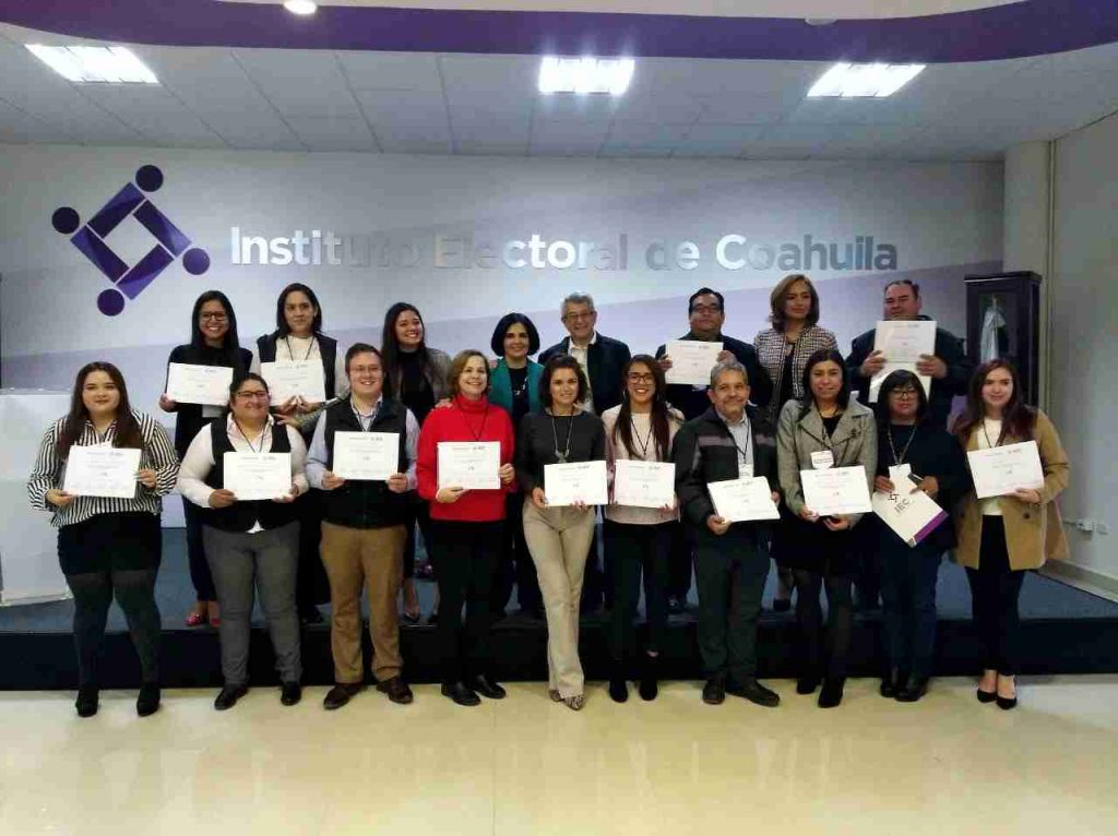 Este sábado en la sala de sesiones de consejo general, el Instituto Electoral de Coahuila y el colectivo Nosotrxs llevaron a cabo la ceremonia de clausura del Curso de Liderazgo e Innovación para la Democracia, donde 15 participantes concluyeron de manera satisfactoria el curso y recibieron de manos de Mauricio Merino Huerta, Coordinador Nacional de Nostorxs y la Consejera Presidenta del Instituto Electoral de Coahuila, Gabriela María de León Farías, sus constancias de finalización.