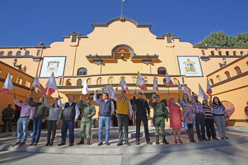 Este lunes el alcalde de Ramos Arizpe, Chema Morales, acompañado de Alejandro González Farías, Secretario de Ayuntamiento; Rolando Álvares, director de Seguridad Pública Municipal; Francisco Sánchez Aguirre, director de Protección Civil y Bomberos; Gilberto Moreno Ayala, Mayor de Infantería de la SEDENA; José Omar Rincón, subinspector de la Guardia Nacional, síndicos y regidores del Ayuntamiento se dieron cita en la Presidencia Municipal para dar el banderazo de arranque del Operativo Navideño 2019.