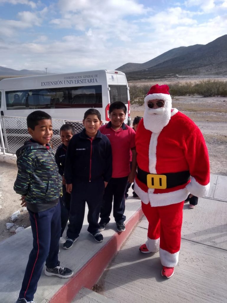 Las comunidades se encuentran a 35 kilómetros de la ciudad, recorriendo otros 48 más de terracería por la carretera Saltillo-Zacatecas y en donde estudiantes de las preparatorias Ateneo Fuente, Instituto de Ciencias y Humanidades y Mariano Narváez González turnos matutino y vespertino, llevaron el festejo navideño a la población infantil de esos ejidos.