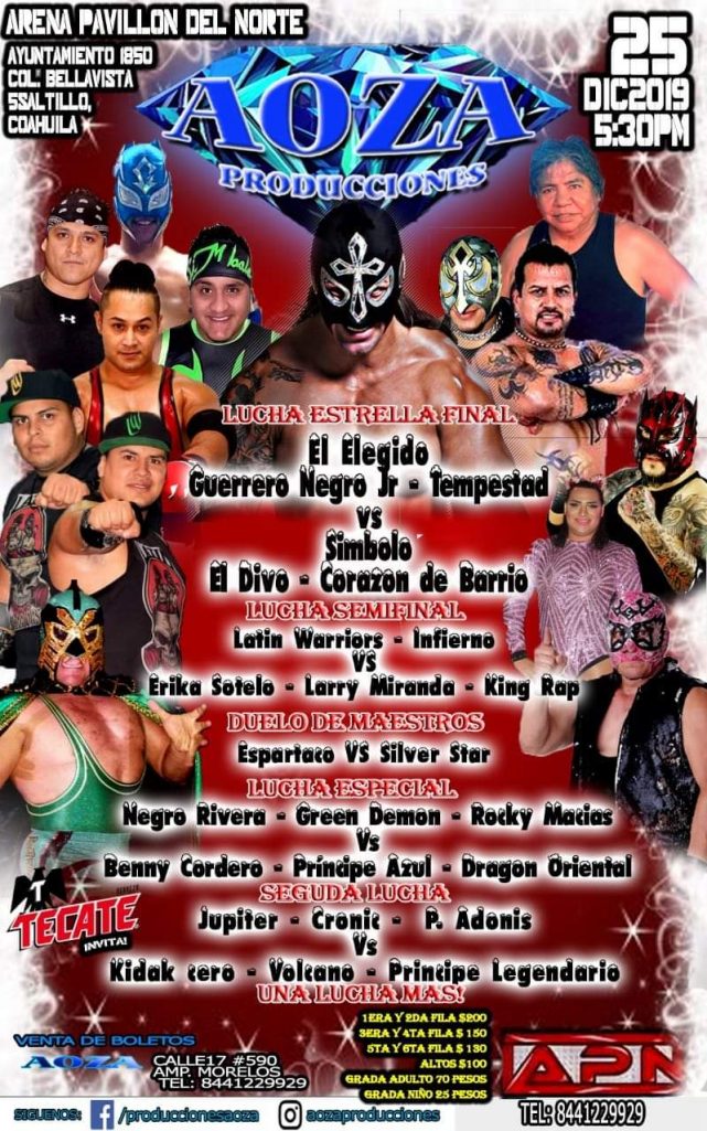 Para celebrar la Navidad, la Arena Pavillón del Norte (APN), situada en Ayuntamiento 1850 de la Colonia Bellavista, realizará este próximo 25 de diciembre, a partir de las 5:30 de la tarde, una función de lucha libre que tendrá como estelar la presencia de El Elegido, quien junto a Guerrero Negro Jr. y Tempestad se enfrentará a El Divo, Símbolo y Corazón de Barrio en la Lucha Estrella Final.