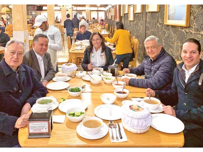 Tras la visita a la planta López Obrador, Bartlett, Nahle, Nieto y Domínguez acudieron juntos a comer barbacoa en Santiago, local que es frecuentemente visitado por el presidente.