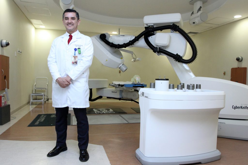 Actualmente, indicó, el IMSS tiene un equipo de radiocirugía robótica (CyberKnife), equipo de alta tecnología, con exactitud y precisión submilimétricas, útil en el tratamiento de enfermedades benignas (meningiomas, adenomas de hipófisis, malformaciones arteriovenosas, entre otras) y malignas (oligometástasis, cáncer de próstata, cáncer de hígado).