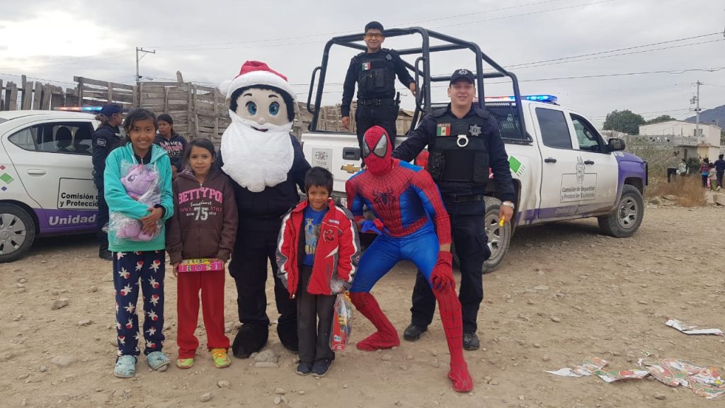 En el Hospital del Niño los elementos del Grupo de Reacción Sureste dejaron momentáneamente sus armas a un lado para llevar juguetes a las niñas y niños internados, y en uno de los ejidos más alejados de la mancha urbana, policías municipales se organizaron para hacer una posada en una primaria.